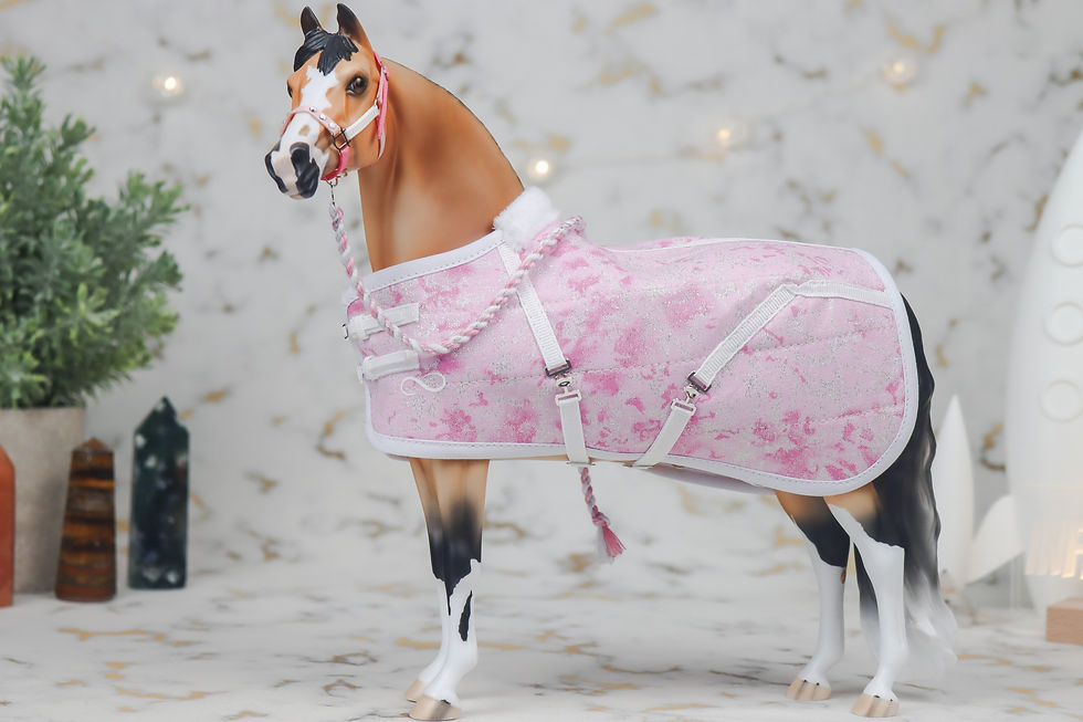 ✨ Please Note: Model horse and other accessories shown are not included. This listing is for the blanket, halter, and lead rope set only.
